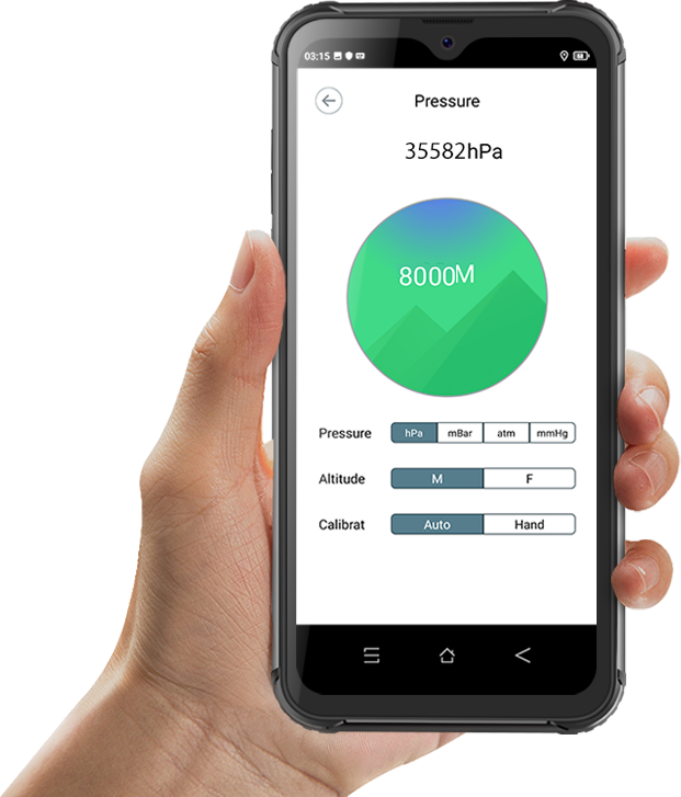 For people who are into hiking or mountaineering, BV9800 Pro helps you chart your progress by measuring altitude with a built-in air pressure sensor.