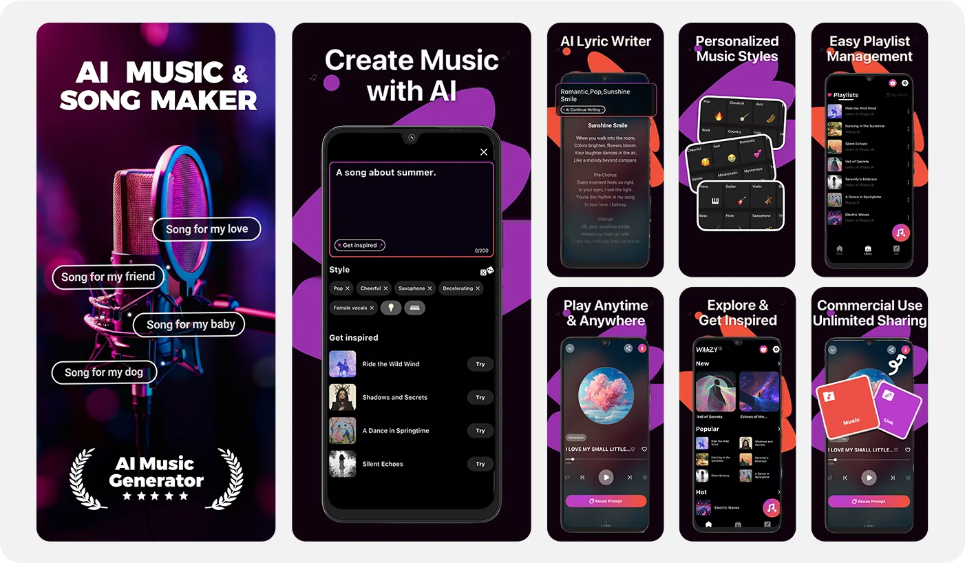 säveltää kokonaisia kappaleita, jotka vangitsevat mielialasi — nopeasti, tunteikkaasti ja aidosti sinun.