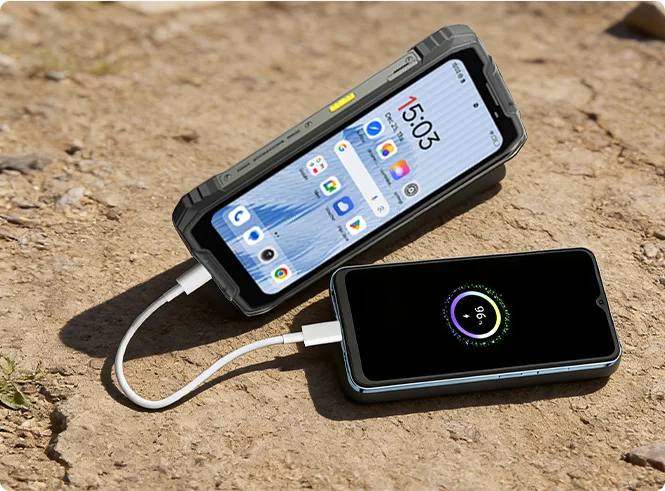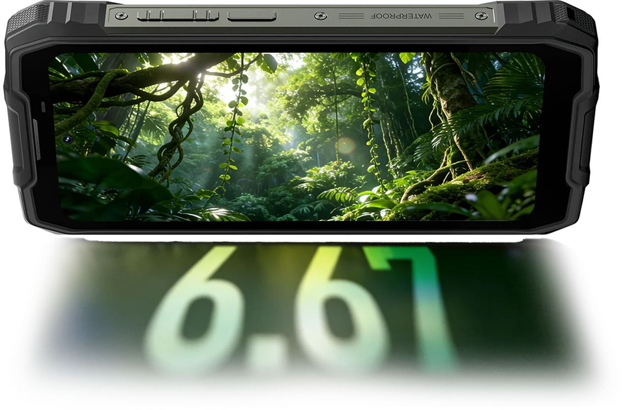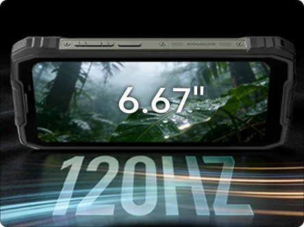 Oscal Pilot 5 6,67 tuuman 120 Hz näyttö stereokaiutin ja retkilyhty 15000 mAh 5G kestävä puhelin