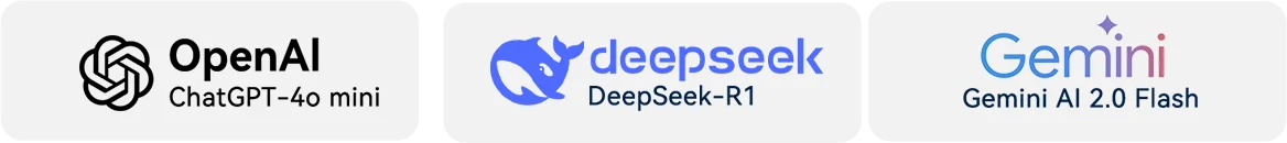 Maailman kolmen parhaan AI-mallin DeepSeek-R1, ChatGPT-4o mini, Gemini 2.0 tukema,
