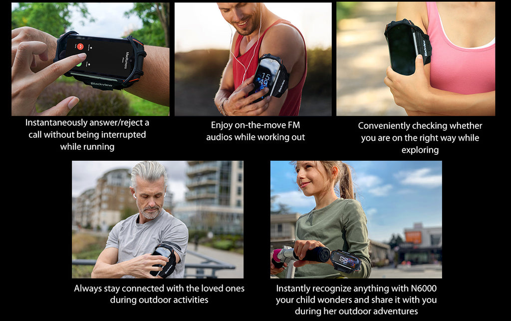 Bracelet/bras réglable à 360° et détachable pour le sport et les activités de plein air pour Blackview N6000 et plus