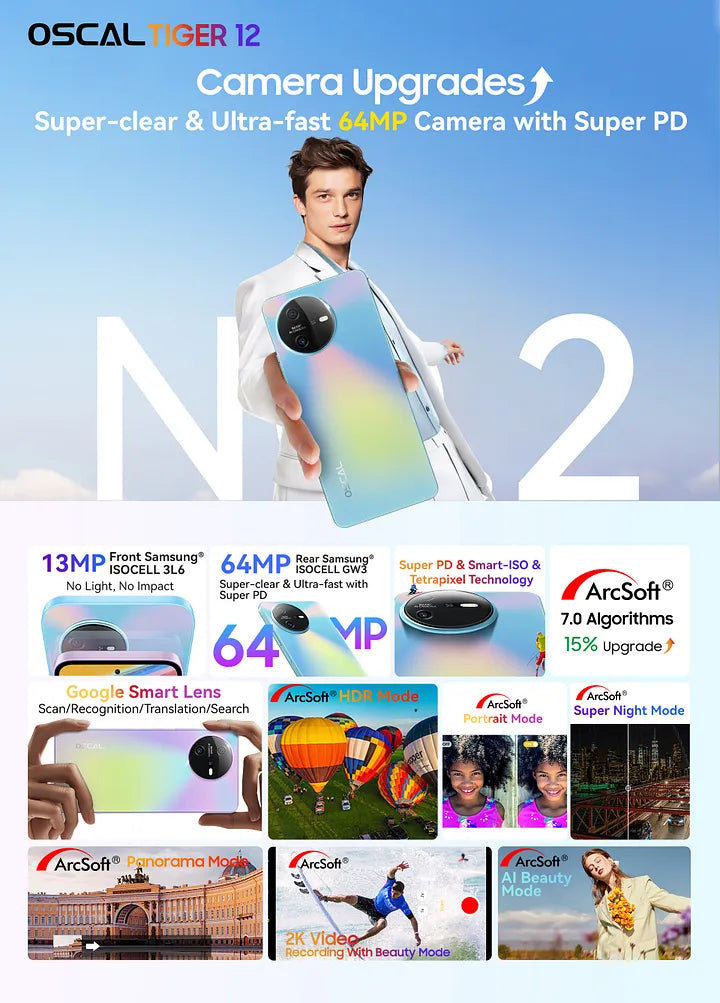 Innovazione Focalizzata sui Giovani: Oscal Pronto a Lanciare TIGER 12 con Fotocamera Ultra-chiara da 64MP con Super PD, Supportato da Algoritmi ArcSoft® 7.0, e Chipset Helio G99 Super-Performante da 6nm, fino a 24GB di RAM, 256GB di ROM!